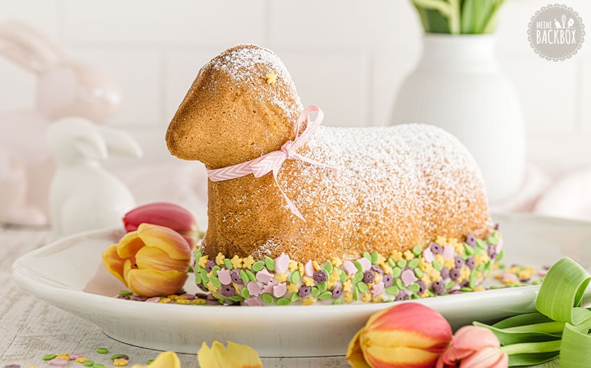 Ostern steht zwar erst noch bevor, gedanklich stecken wir aber schon mitten im Fest der Auferstehung, Hoffnung und des Neubeginns. Und einen Neubeginn können wir nach 2020 doch bestimmt alle gut gebrauchen, oder? Um diesen gebührend zu feiern, gibt es bei uns dieses Jahr ein Osterlamm! Keine Sorge, wir haben dafür keinem Tier ein Haar gekrümmt, sondern ein supersüßes Lamm gebacken. Unser Lämmchen schmeckt einfach wunderbar weich und saftig, denn mit dem richtigen Rührteig musst du keine Angst mehr vor trockenem Kuchen haben. Und damit beim Osterlamm-Backen nichts mehr schief gehen kann, versteckt sich dafür in unserer Osterbox sogar eine hochwertige Osterlamm Backform. 😍 Für eine frisch-frühlingshafte Note peppen wir den Teig übrigens mit etwas Pfirsich-Maracuja Eierlikör auf. Hübsch dekoriert, in einem Blumenbeet aus Streuseln sitzend, bringt es nicht nur dich, sondern garantiert auch deine Liebsten zum Staunen. Einfach lammtastisch, oder?! 🐏 💐