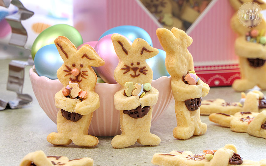 - Mit dem Drück-mich-Hase von Städter Hasen ausstechen und auf einem mit Backpapier ausgelegten Backblech verteilen.